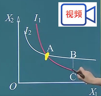 2.无差异曲线图上任何两条无差异曲线不能相交,因为不同的曲线代表的满足程度水平不同。